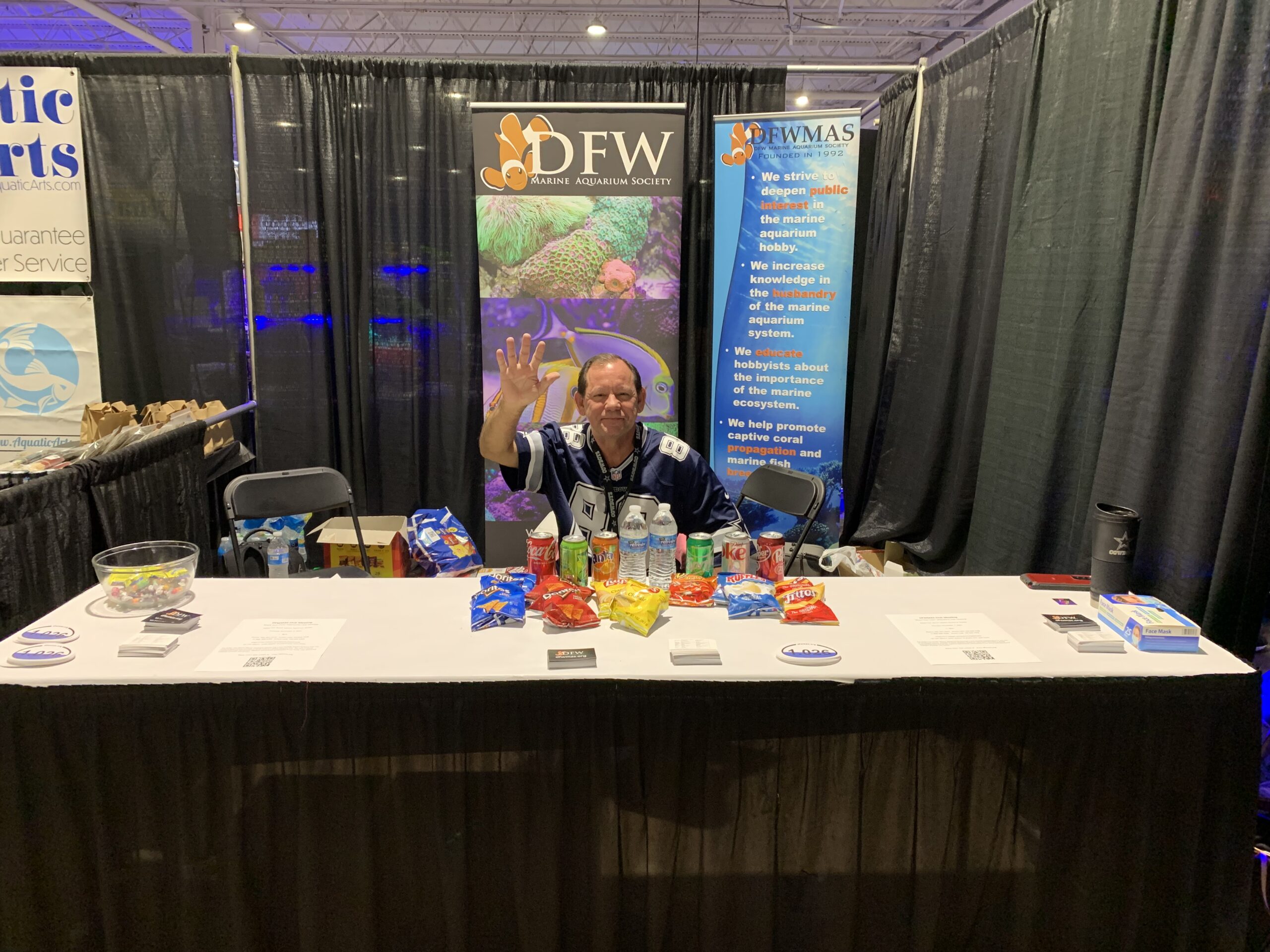 In addition to staffing booth DFWMAS (Dallas Fort Worth metroplex Marine Aquarium Society), those dfwmas affiliated volunteers that helped Aquashella directly with check-in, line management, swag distributions, some even did light security were given fun Aquashella staff t-shirts.