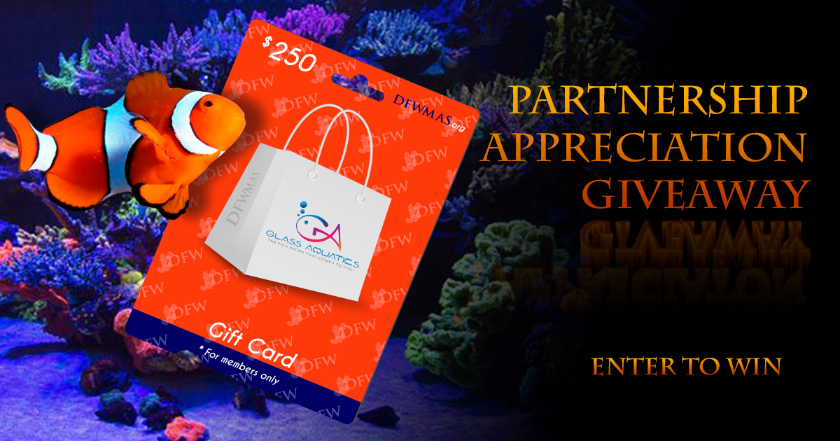DFWMAS active paid members ENTER for a chance to win a $250 Glass Aquatic’s Gift Card